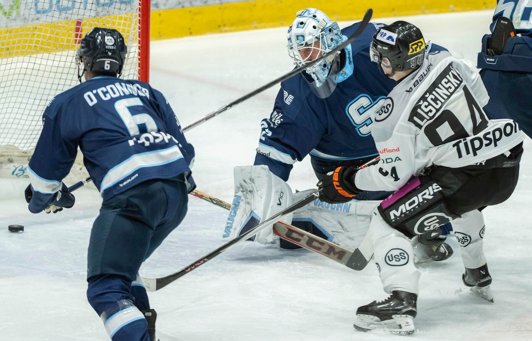 Začínal v ňom Dominik Riečický, ktorého vyhnali na striedačku dva presilovkové zásahy Logana Nijhoffa a jeden od Tomáša Marcinka. Pre Nijhoffa išlo vôbec o prvé góly v drese belasých: trafil sa až v 11. stretnutí, naposledy bodoval ešte 21. marca proti Liptovskému Mikulášu.